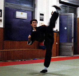 Da piccolo con la scherma, poi con il karate c.n. 1° Dan, per un breve periodo pugilato e in seguito praticante e maestro di Kung fu 5° grado.