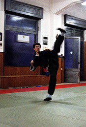 Da piccolo con la scherma, poi con il karate c.n. 1° Dan, per un breve periodo pugilato e in seguito praticante e maestro di Kung fu 5° grado.